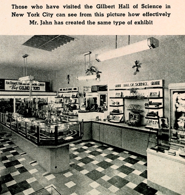 ![]() The Miami Hall of Science is probably the most elusive of all the Gilbert Halls of Science, as very little has been written about it. For that reason, I did a deep dive into Miami newspapers and Florida history resources to get a little more information From what we know, the Miami Hall of Science originated as the result of efforts by Leroy F. Jahn, a Miami businessman, to find a way to dramatically display the products he sold in his magic, hobby, and sporting goods store in Miami. At the left is a photo of Jahn taken at the dedication of the Chicago Hall of Science in 1953. Leroy Jahn was originally from Cincinati, Ohio and appears to have come to Florida in the 1920's, at first for just the winter seasons. Exactly when he became a permanent Florida resident is unclear. A news clipping from the Miami News dated December 21st, 1928 reveals that he ran a restaurant called the Kentucky Coffee Shop. (His father was from Kentucky) It also noted that he was a special inspector with the Miami Police department in the early 1940's but resigned in 1941. He opened his magic, hobby and sporting goods store in 1942. Around the end of 1943, he visited the New York Hall of Science and was greatly impressed with the dramatic presentation of the products displayed in Gilbert's new Hall of Science. Jahn and Gilbert had been friends for many years as Jahn had been one of Gilbert's first salesmen. It was no doubt a perfect fit as both shared an interest in magic.1 After seeing the New York Hall of Science and meeting with Gilbert, Jahn decided that he would like to create a similar Hall of Science in Miami. Gilbert had long seen the potential for this linking of retailer with manufacturer and helped Jahn accomplish his goal. In 1945, the Miami Hall of Science opened at 300 East Flagler Street. 2 The meeting with Jahn in 1943 and his subsequent creation of the Miami Hall of Science was probably the first major implementation of Gilbert's long expressed desire to create Halls of Science in retail stores. Even in Gilbert's pre Flyer days, he referred to the "Halls of Science" as the source of Gilbert products. You can see the use of the phrase "from the Gilbert Hall of Science" many years before the opening of the New York Hall of Science. Jahn's interest in opening his own Hall of Science in Miami, was welcomed by Gilbert as it advanced his plan of encouraging all his wholesale customers to "open a Hall of Science at your local toy store." Jahn's opening of a Hall of Science in his Miami store may have stimulated Gilbert to publish a guide book for doing just that in 1948. (Click here to view that guide book) It provided several items of display furniture to use to create a uniform Gilbert look for the display of Gilbert products, very much in the Streamline Moderne style that characterized the New York Hall of Science.