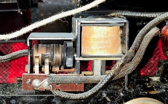Gary has been able to provide some details not covered in the guide books and I will present them here. One of the first things to discuss is Gilbert's terminology for the two reverse control systems. The first type triggers the reverse unit by cutting power to the locomotive. Gilbert called this "Remote Control," abbreviated "RC." The second type of control system used a relay activated by the addition of a DC current to the track voltage. The relay then triggered the reverse unit by applying power to it. This was called "Remote Directional Control," abbreviated "RDC." The latter system had the advantage of enabling the train to start up in the same direction when power was cut. This eliminated the need for a means of locking the locomotive in one direction or another. Gilbert did provide a means of manually triggering the reverse unit in the form of a hole in the top of the locomotive through which a toothpick or other small tool could be inserted to manually change the direction.