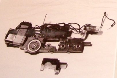 ![]() Smoke Unit with Front Fill TubeProbably the most striking variation in this particular locomotive is it's smoke unit. It had the fill tube on the front of the unit, just under the fitting that sent the smoke through the tube to the smoke stack. It consisted of a short rubber tube with a cap fitting that could be moved out to enable refilling of the smoke unit, rather than the filler tube extending through the coal pile in the tender that appeared on production units. The absence of the hole in the tender coal pile might be more esthetically pleasing, but these units were most likely a nuisance to fill. This smoke unit fills in a way similar to the Erector Smoke Unit that was later offered in 1950 for use in Erector set models. (Photo Courtesy of Paul Burkholder) |