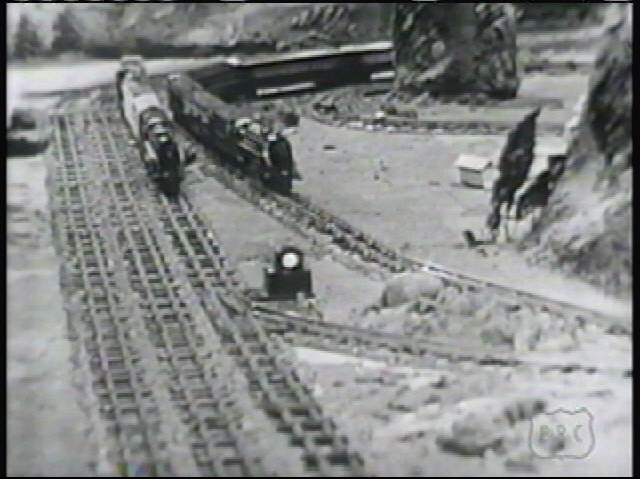 Before the Boy's Railroad Club, there was The Roar of the Rails. This was a series that consisted of 15 minute programs about railroad history produced live in 1949. Some have said that no 4-8-4 locomotives were used on this show because they didn't run dependably enough on the sharp Flyer curves and Gilbert didn't want any derailments on live TV.