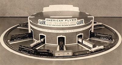Static displays were produced by the Gilbert factory and sold to dealers for use in displaying American Flyer trains. Although some displays were specialty items designed for a particular setting, many were marketed through the same display catalogs as the display layouts. Generally, they were very low priced or even offered free with product purchases.